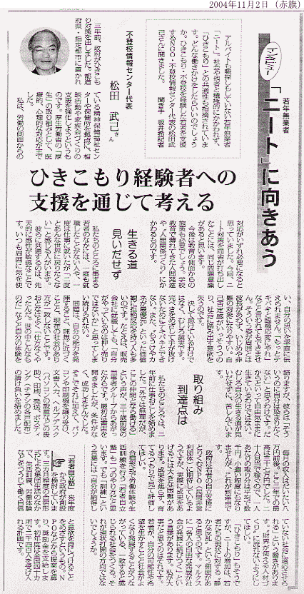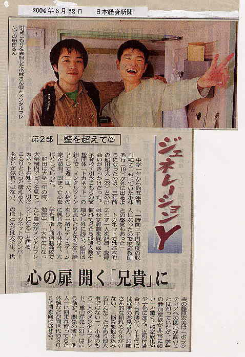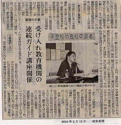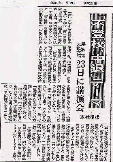 TOP不登校情報センターのプロフィール新聞記事インデックス>新聞記事2004年