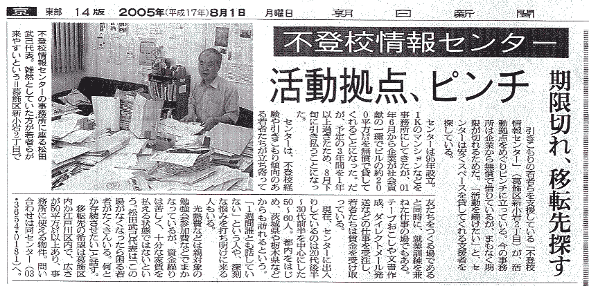 TOP>不登校情報センターのプロフィール>新聞記事インデックス>新聞記事2005年