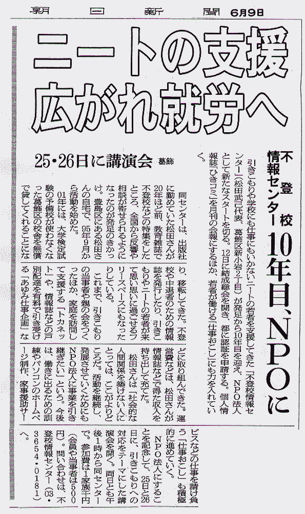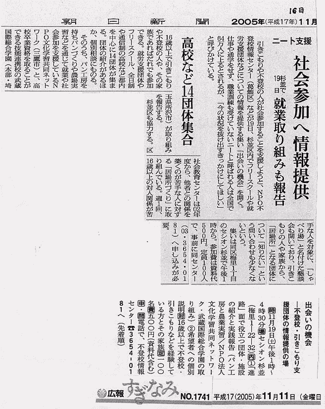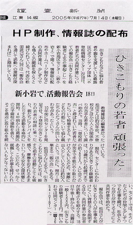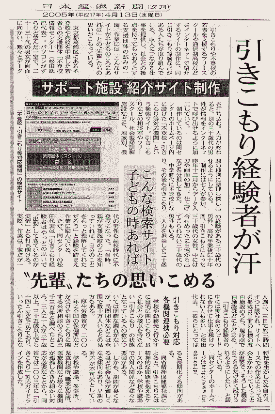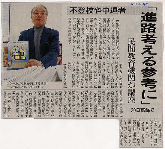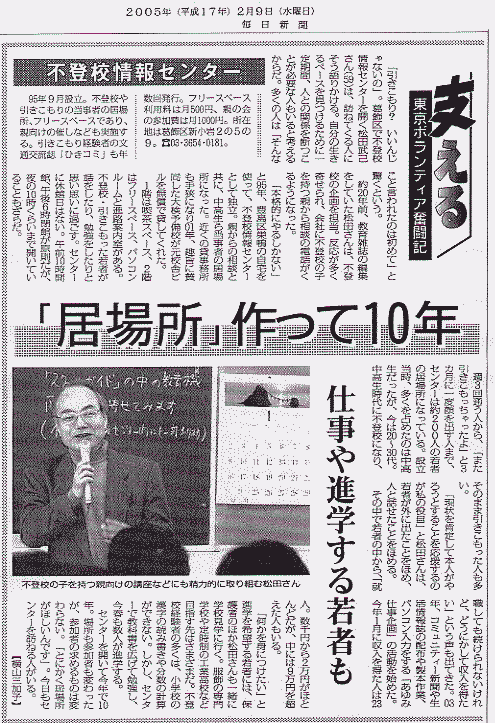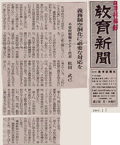 TOP>不登校情報センターのプロフィール>新聞記事インデックス>新聞記事2005年