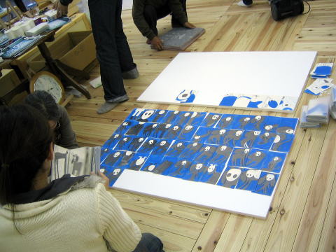 ![]() 約60枚の作品を一枚のボードに貼り付けひとつの作品として展示しましました |