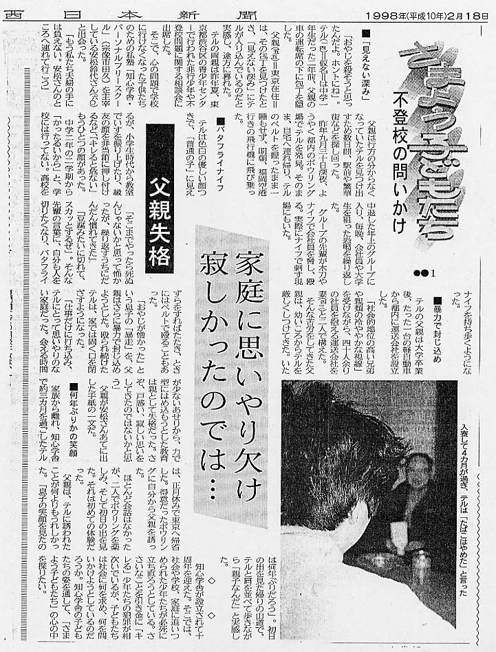 西日本新聞 1998年2月18日(5回シリーズの1回目)