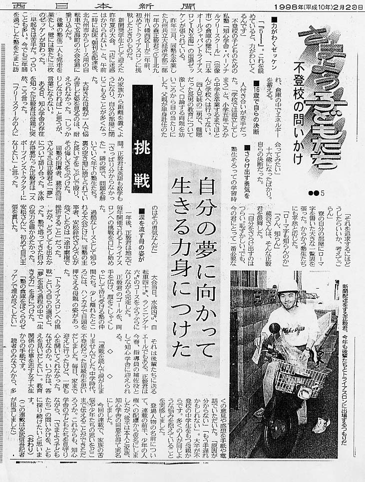 西日本新聞 1998年2月23日(5回シリーズの5回目)