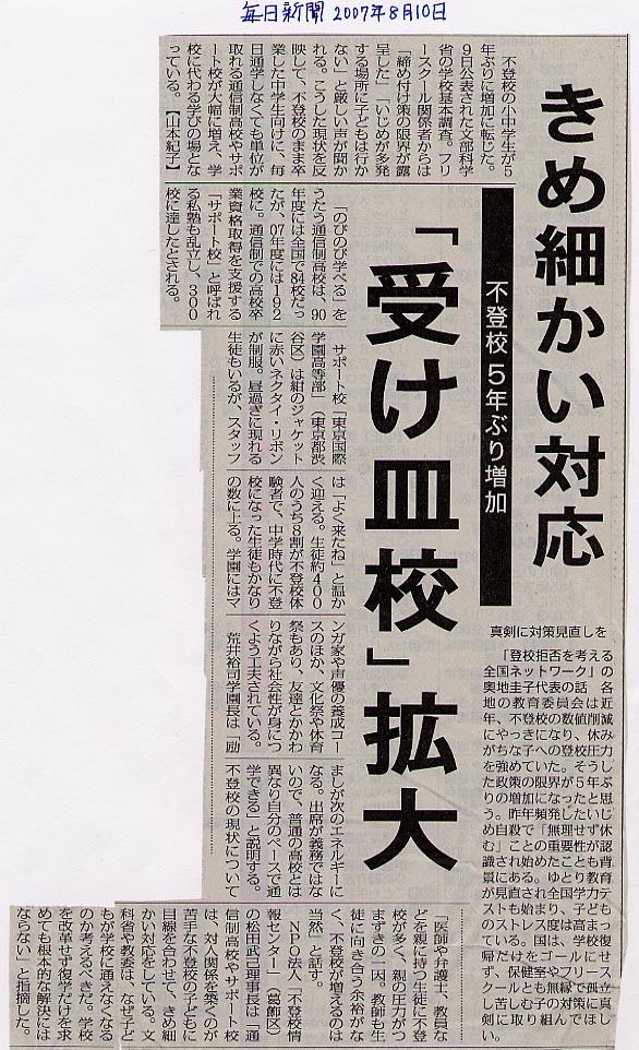 不登校情報センター、東京国際学園高等部、登校拒否を考える全国ネットワーク